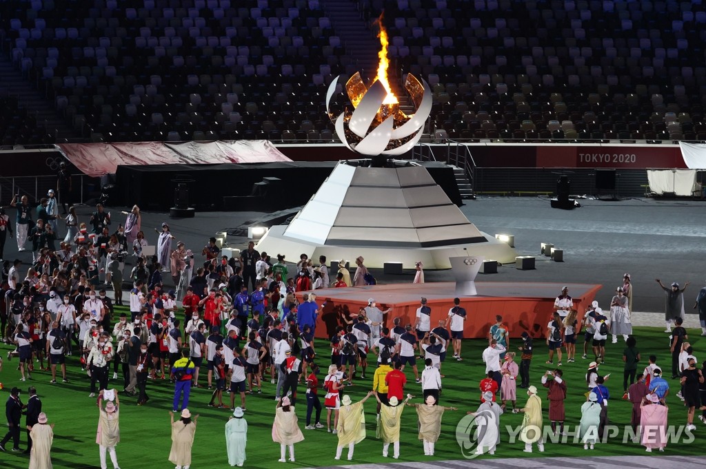 TOKYO, Aug. 8 (Yonhap) -- The Olympic flame that has been burning for the past two weeks in Tokyo was extinguished Sunday, closing the first Summer Games held during the global coronavirus pandemic with a celebration of great athletic feats.