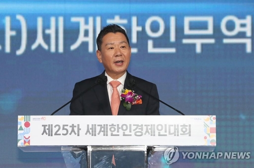 | ▲ Ha Yong-hwa, chairman of the World Federation of Overseas Korean Traders Association (World-OKTA), delivers an opening address at the 25th World-OKTA Convention at the Grand WalkerHill Seoul on Oct. 12, 2021. (Yonhap) |