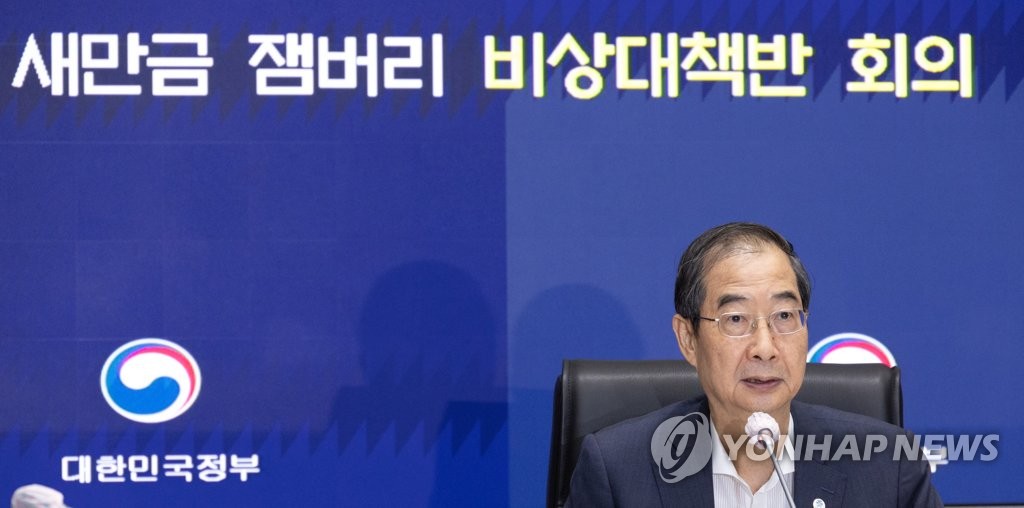 한덕수 국무총리는 이날 태풍 북상에 대비해 참가자들이 분산 배치된 새만금 세계잼버리대회와 관련, "모든 대원이 출국할 때까지 빈틈없이 지원할 것을 약속드린다"고 말했다.