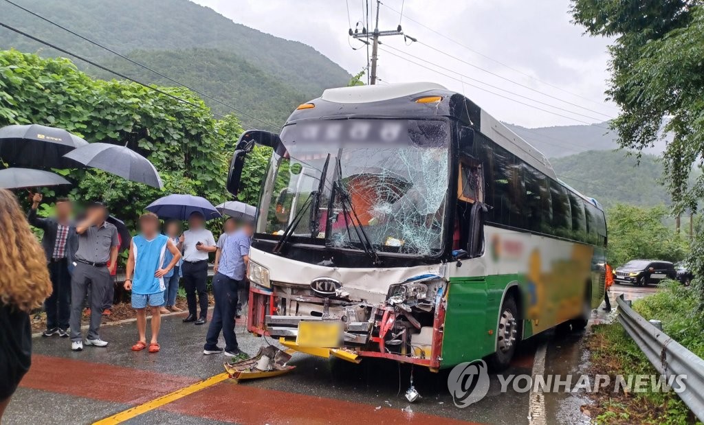이날 낮 12시 46분께 전남 순천시 서면 운평리 도로에서 스위스 대원들이 타고 있던 관광버스와 순천 시내버스가 충돌했다.