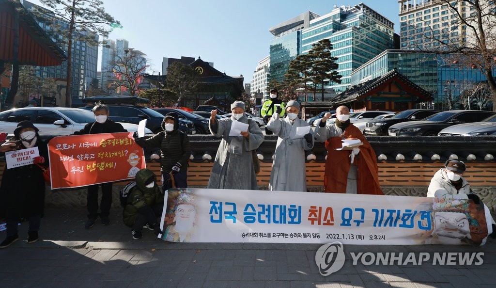 '승려대회 취소를 요구하는 불제자'라는 이름으로 모인 조계종 승려와 신도 20여명은 13일 서울 조계사 앞에서 기자회견을 열어 "이번 승려대회는 국민건강에 위협을 가하고, 선거개입 시비를 일으키고, 일방적 추진으로 승가 분란의 소지가 다분하기에 대부분 스님은 승려대회를 찬성하지 않는다"며 승려대회 취소를 촉구했다.