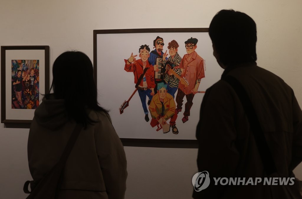 마포아트센터 2층에 마련된 전시 공간에는 다양한 미술 작품이 관객을 맞았다. 크라잉넛 멤버들의 모습을 익살스럽게 담은 작품부터 유명 캐릭터 배트맨과 조커를 그린 작품도 눈길을 끌었다. 김창완의 '자화상'은 검은색 마이크 앞에서 혼신을 다해 노래하는 모습이 담긴 작품으로, 베테랑 음악인의 관록이 느껴졌다.