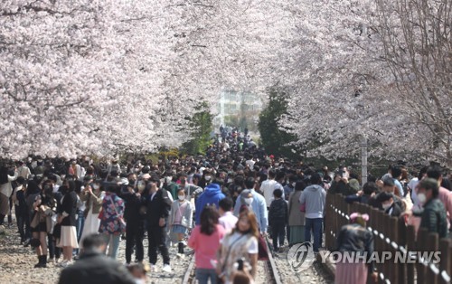 대구에서 온 30대 부부는 "코로나19가 시작된 이후 처음 왔는데, 벚나무도 크고 사람도 많아 보기가 좋다"며 웃었다.
