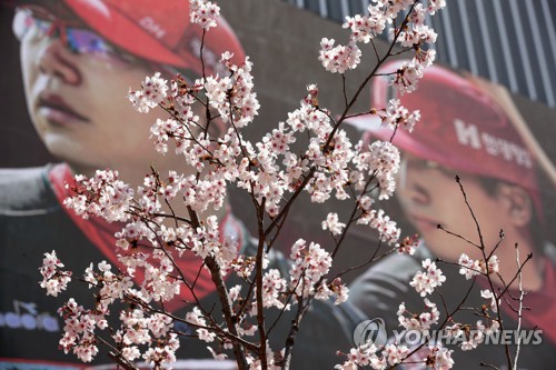 | ▲ 야구장에 핀 벚꽃 (광주=연합뉴스) 조남수 기자 = 3일 오후 프로야구 LG 트윈스와 KIA 타이거즈의 경기가 열리는 광주-기아챔피언스필드에 벚꽃이 피어 있다. 2022.4.3 |