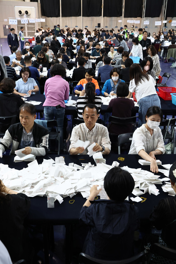 S. Korean presidential election Ballot counting is underway for the presidential election at a ballot counting station in Seoul on June 3, 2025. (Yonhap)(END)