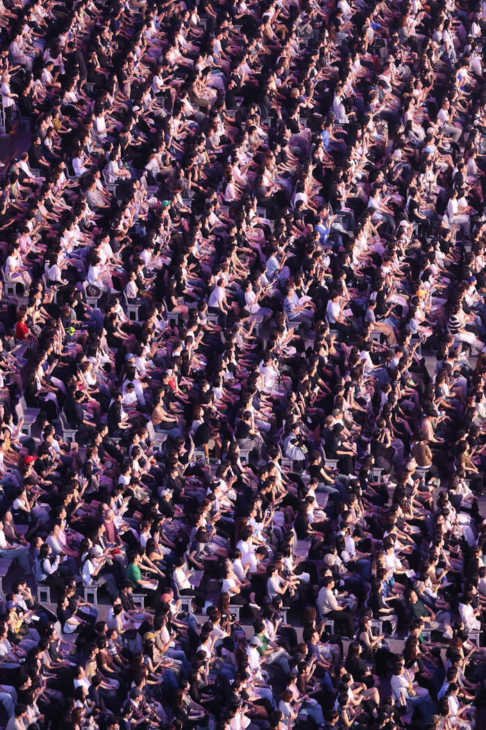 People take part in the opening ceremony of the 30th Busan International Film Festival (BIFF) at the outdoor theatre of the Busan Cinema Center in the southeastern port city on Sept. 17, 2025. The 10-day festival features 241 movies from 64 countries and, including the movies selected for the citizen-driven Community BIFF, the total number of films being presented rises to 328. (Yonhap)