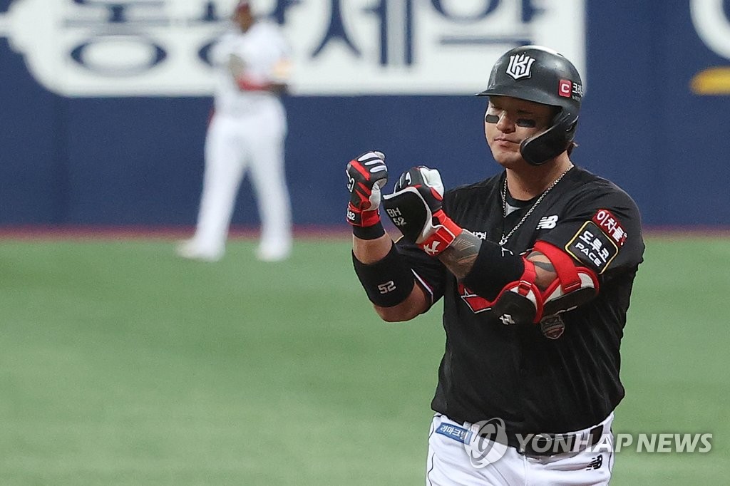 After a single and a walk put two men aboard, cleanup Park Byung-ho knocked in the game's first run with a single to center. Two batters later, Kang Baek-ho slapped a single to left field to double the Wiz's lead.