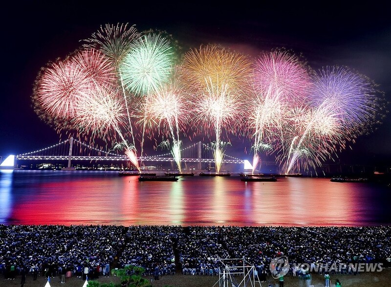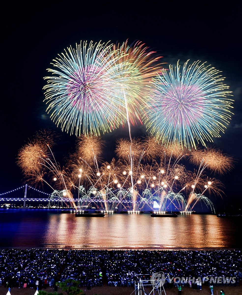 광안대교를 배경으로 한 나이아가라, 컬러이과수 등 시그니처 불꽃과 국내 유일의 지름 400m짜리 초대형 불꽃 등이 밤하늘을 수놓자 관람객들은 탄성을 질렀다.