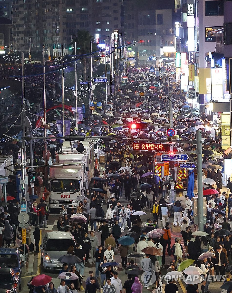 부산교통공사는 관람객의 원활한 이동을 위해 이날 도시철도 1∼4호선 열차 운행을 240회 증편하고 막차 시간을 25분 연장한다.