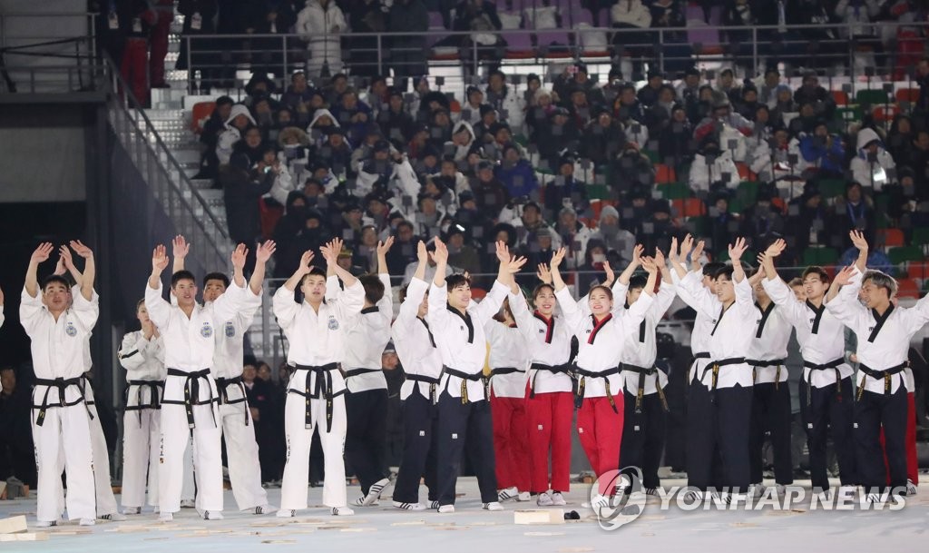 | ▲ [올림픽] 남북 합동 태권도 공연 (평창=연합뉴스) 박동주 기자 = 9일 오후 강원도 평창 올림픽스타디움에서 열린 2018 평창동계올림픽 개막식에서 남북한의 합동 태권도 공연을 마치고 인사하고 있다. 2018.2.9 pdj6635@yna.co.kr |
