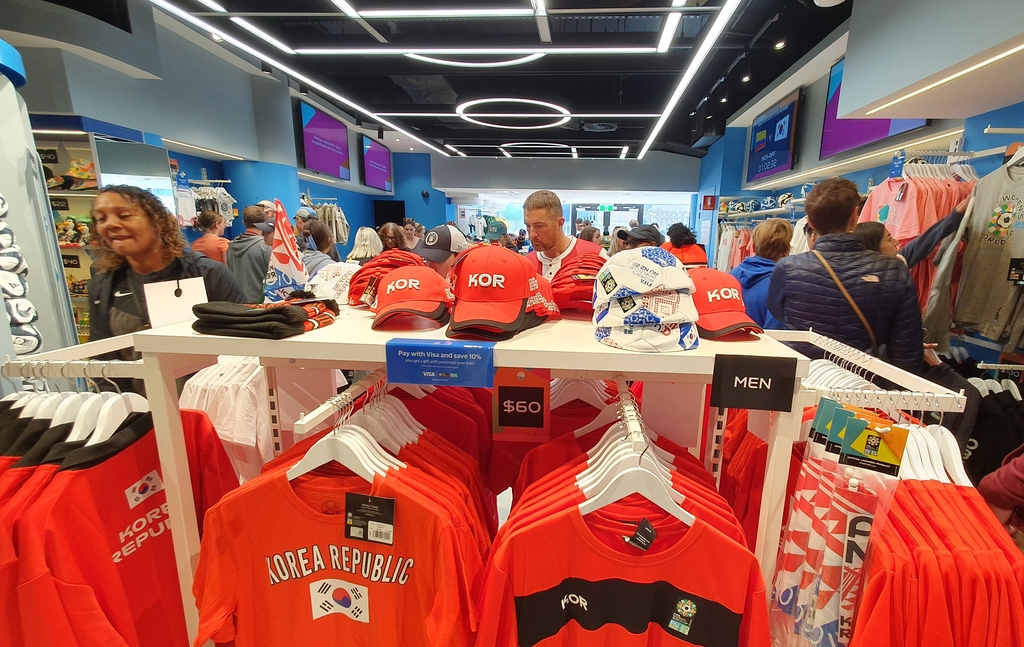 | ▲ 한국·콜롬비아 경기가 열린 시드니 풋볼 스타디움 기념품 매장 (시드니=연합뉴스) 정동철 통신원 = 2023 FIFA 호주·뉴질랜드 여자월드컵 한국·콜롬비아 경기가 열린 시드니 풋볼 스타디움 안에 있는 기념품 매장에 한국 여자축구대표팀 기념상품이 진열돼 있다. 2023.7.25. dcj@yna.co.kr |