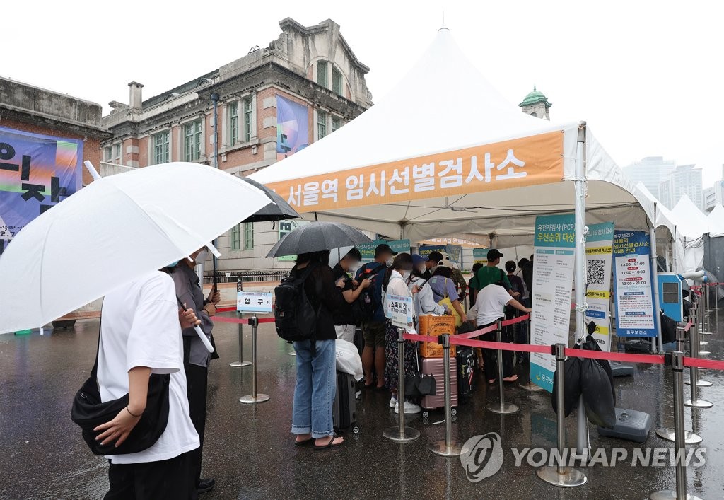 | ▲ This photo taken on Sept. 4, 2022, shows people waiting to take COVID-19 tests at a makeshift clinic near the Seoul Station in central Seoul. (Yonhap) |