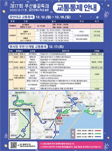 3단계 교통통제 구간은 오후 5시부터로 광남로, 민락수변로, 이기대공원로 등이 대상이다.