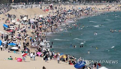 | ▲ Haeundae Beach in the southern port city of Busan is crowded on May 22, 2022. (Yonhap) |