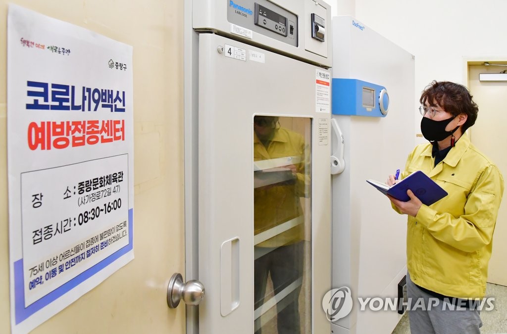 | ▲ A health official checks a freezer for the storage of vaccines at a vaccination center in Seoul on March 19, 2021. (PHOTO NOT FOR SALE) (Yonhap) |