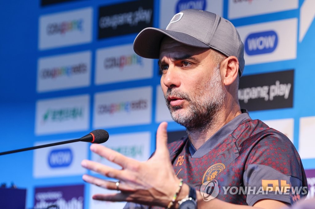 과르디올라 감독은 29일 서울월드컵경기장에서 '스페인 명가' 아틀레티코 마드리드와의 쿠팡플레이 시리즈 2차전을 하루 앞두고 열린 사전 기자회견에 참석했다.