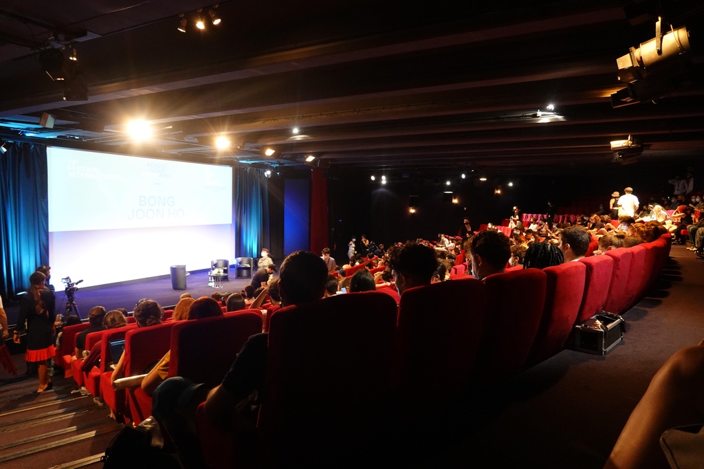 봉 감독과 관객의 만남은 칸 영화제 주 행사장인 '팔레 데 페스티발'의 가장 꼭대기 층(한국 기준 6층)에 480여개 좌석을 구비한 부뉴엘관에서 열렸다.