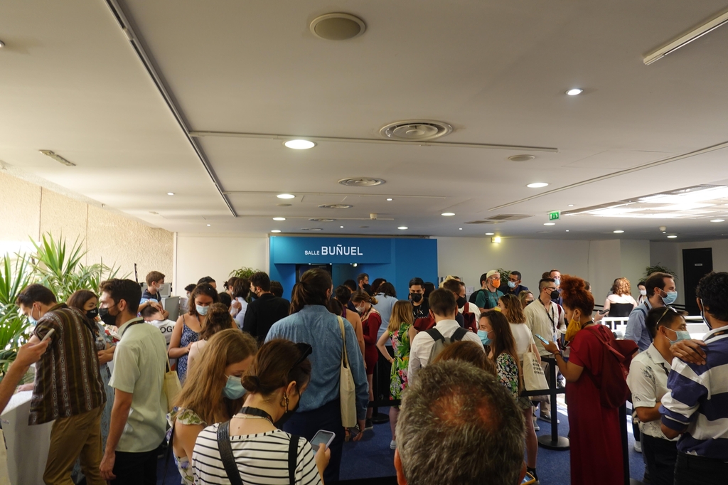 | ▲ 봉준호 감독과의 대화를 기다리는 관객들 (칸=연합뉴스) 현혜란 특파원 = 프랑스 남부 휴양도시 칸에서 열린 제74회 칸 국제 영화제가 7일(현지시간) 봉준호 감독을 초청한 '랑데부 아베크' 행사장에 들어가려고 관객들이 줄을 서 있는 모습. 2021.7.7 runran@yna.co.kr |