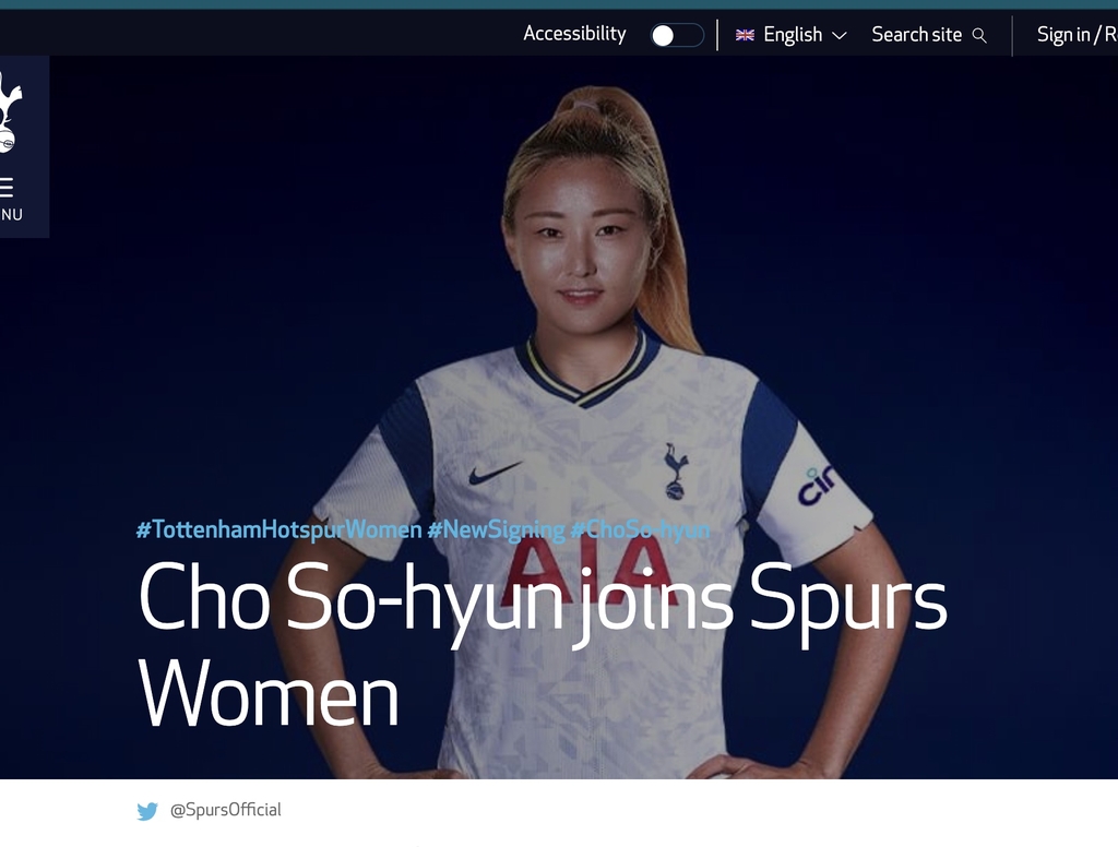 | ▲ 조소현 영입 알리는 토트넘 [토트넘 홈페이지 캡처. 재판매 및 DB 금지] |