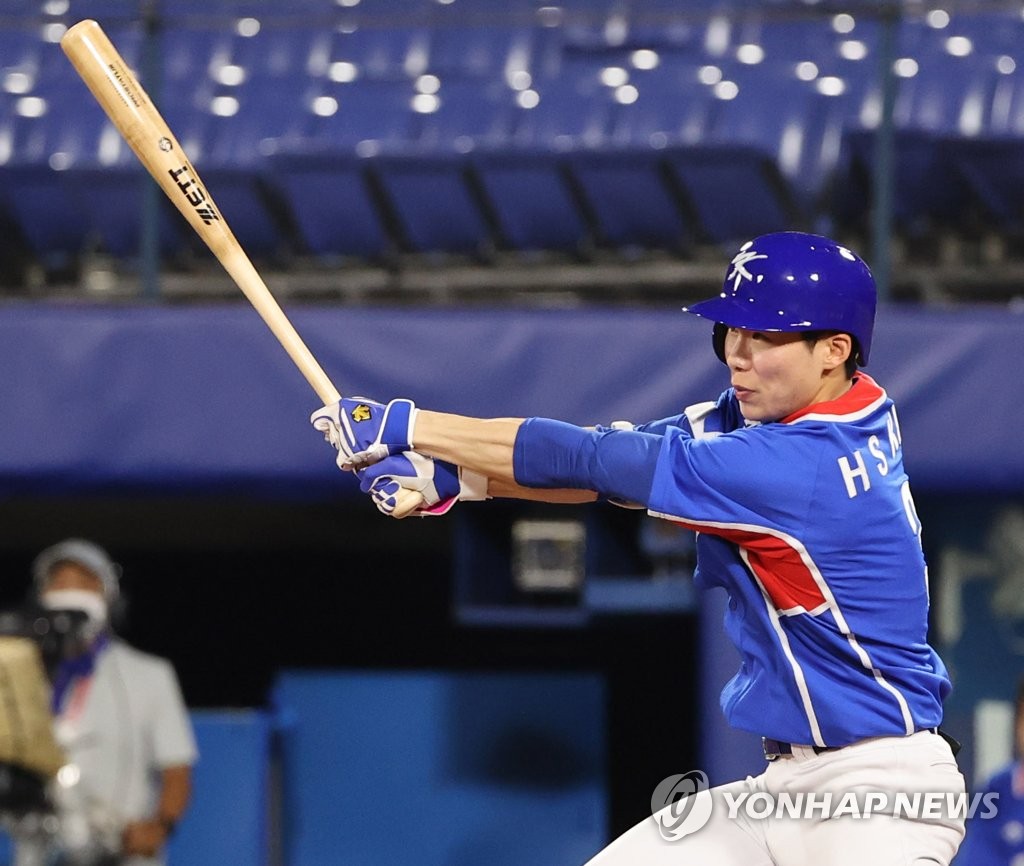 | ▲ Kim Hye-seong of South Korea hits a single against the United States in the top of the fifth inning of the teams' Group B game in the Tokyo Olympic baseball tournament at Yokohama Stadium in Yokohama, Japan, on July 31, 2021. (Yonhap) |