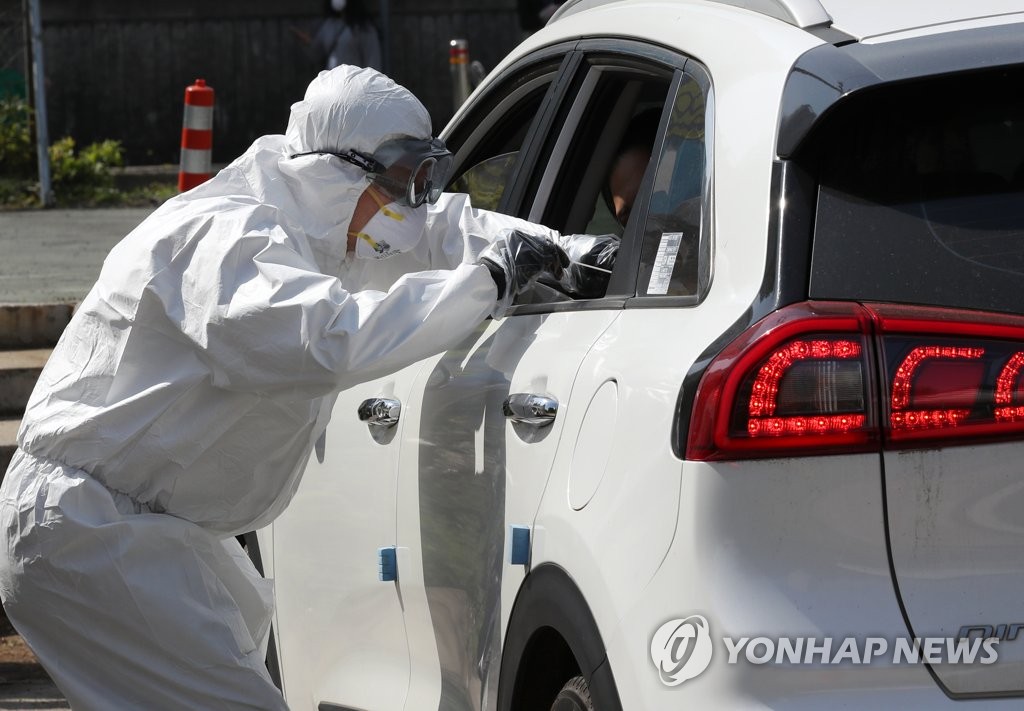 | ▲ A health care worker conducts a COVID-19 test at a drive-through testing center in the southwestern city of Gwangju, 329 kilometers south of Seoul, on April 21, 2021. (Yonhap) |