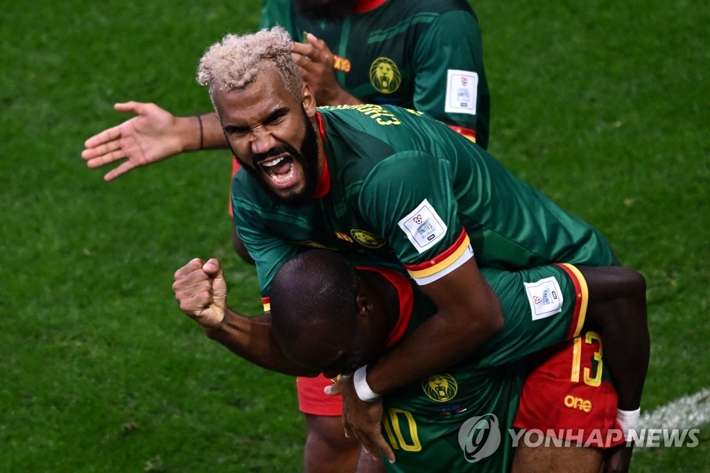 | ▲ 동점골 만들고 기뻐하는 추포모팅 (도하 AFP=연합뉴스) 카메룬 축구 대표팀의 공격수 에리크 막생 추포모팅(33·바이에른 뮌헨)이 28일(현지시간) 카타르 도하 알 와크라 알 자눕 경기장에서 열린 세르비아와의 2022 국제축구연맹(FIFA) 카타르 월드컵 조별리그 G조 2차전에서 동점골을 넣은 뒤 환호하고 있다. 추포모팅은 후반 21분 득점에 성공하며 3-3 동점을 만들어냈다. 2022.11.28 clynnkim@yna.co.kr |