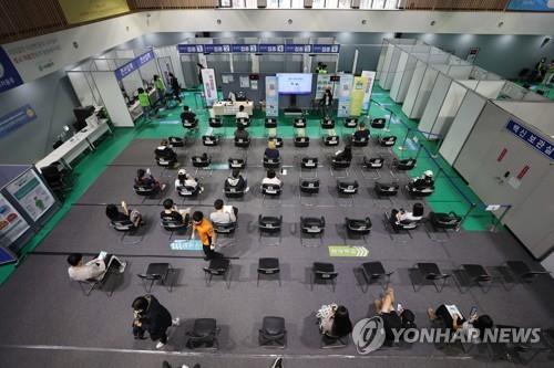 | ▲ People wait to check whether they have adverse reactions after getting shots at a vaccination center in western Seoul on Oct. 15, 2021. (Yonhap) |