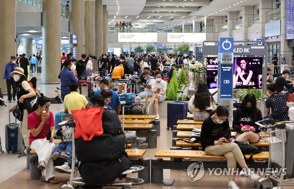 | ▲ This photo taken June 2, 2022, shows passengers at the No. 1 Terminal of Incheon International Airport in Incheon, west of Seoul, amid eased travel restrictions. (Yonhap) |