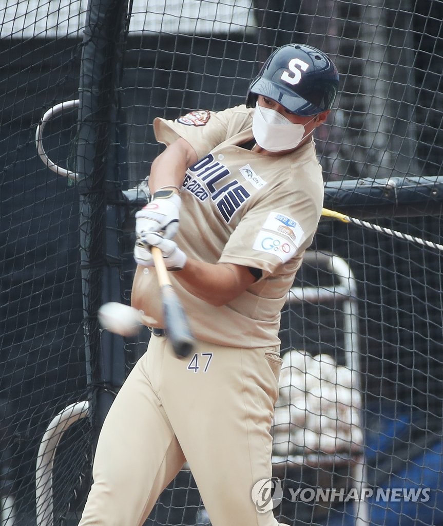 | ▲ 타격하는 권광민 (수원=연합뉴스) 홍기원 기자 = 30일 경기도 수원케이티위즈파크에서 열린 '2022 KBO 신인 드래프트 트라이 아웃'에서 권광민이 타격 테스트를 받고 있다. 2021.8.30 xanadu@yna.co.kr |