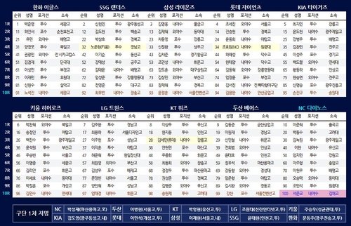 10개 구단은 1라운드부터 10라운드까지 총 100명의 선수를 뽑는다.