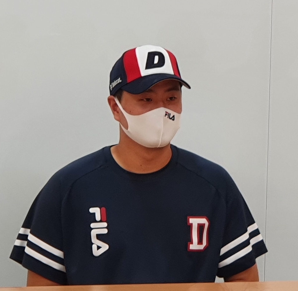 | ▲ 인터뷰하는 두산 이영하 [촬영 최인영] |