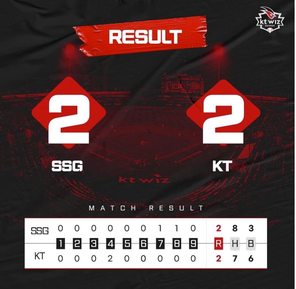 kt는 11일 수원케이티위즈파크에서 SSG 랜더스를 불러 치른 2021 신한은행 쏠(SOL) KBO리그 홈경기에서 또 2-2로 비겼다.