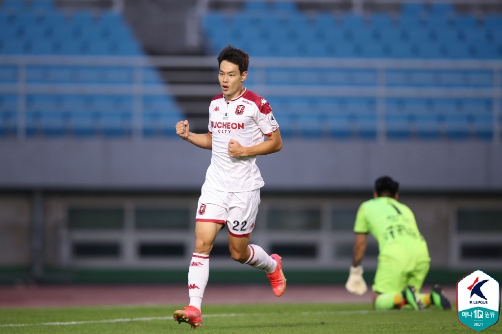 | ▲ 선제골을 넣고 기뻐하는 부천 한지호 [한국프로축구연맹 제공. 재판매 및 DB 금지] |