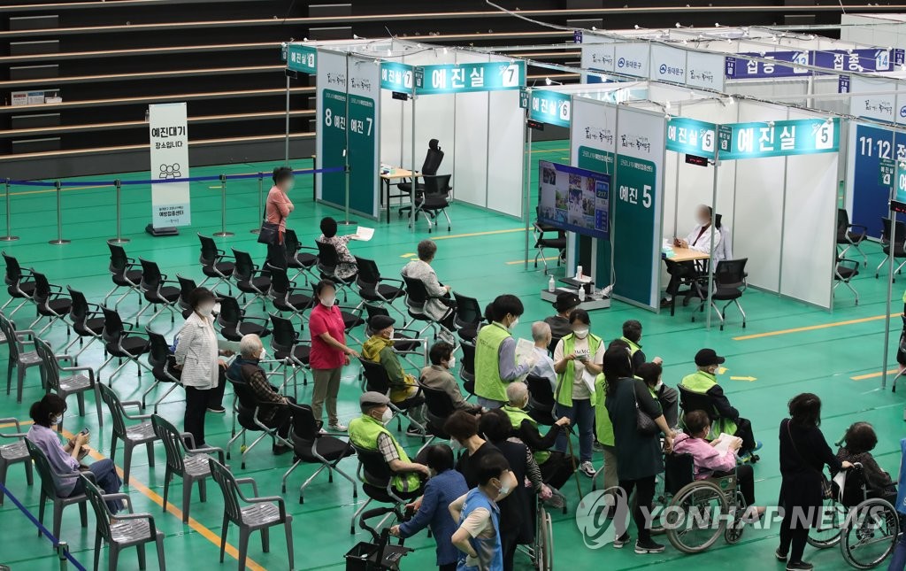 ▲ Elderly people aged 70 and older wait to receive coronavirus vaccines at a vaccination center in eastern Seoul on May 13, 2021. (Yonhap)