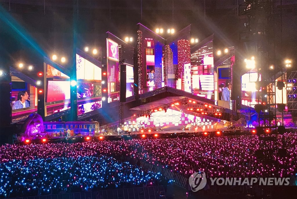 부산시와 부산경찰청 등에 따르면 부산 아시아드 주경기장에는 입장객 5만2천 명과 주변에서 공연을 보려는 관람객 3천여명 등이 몰렸다.