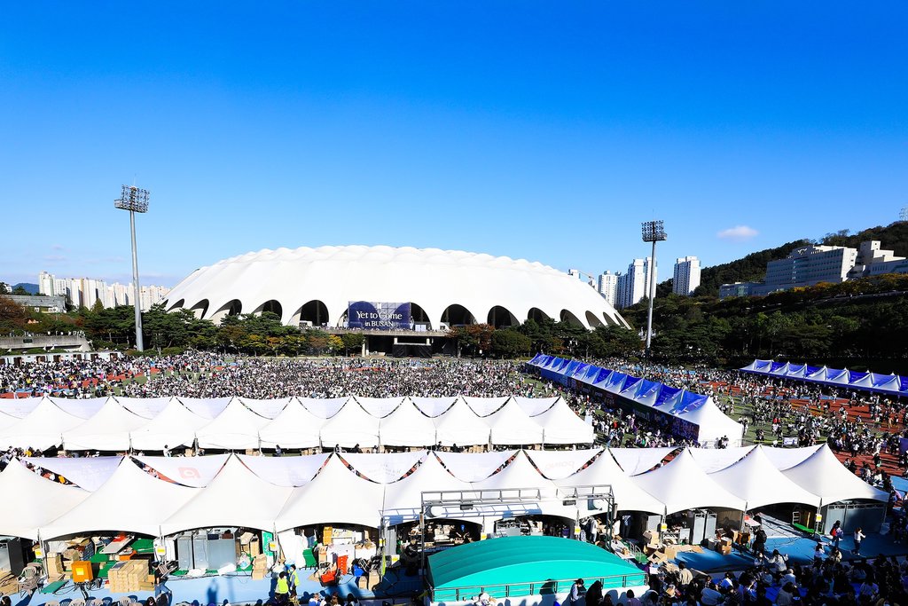 | ▲ 'BTS를 만나러 왔어요' (서울=연합뉴스) 2030 부산세계박람회 유치 기원 콘서트 '옛 투 컴 인 부산'(Yet To Come in BUSAN)이 열린 15일 오후 부산아시아드주경기장 인근이 입장을 기다리는 팬들로 가득차 있다. 2022.10.15 [빅히트뮤직 제공. 재판매 및 DB 금지] photo@yna.co.kr |