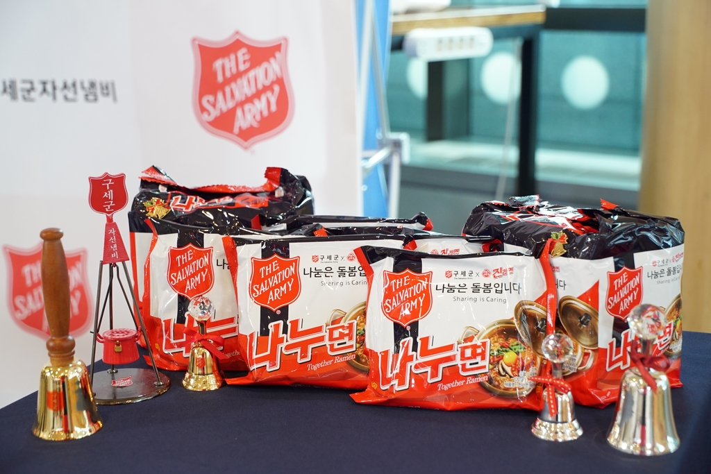 (서울=연합뉴스) 양정우 기자 = 구세군 한국군국은 13일 서울 서대문구 충정로 구세군 빌딩에서 취약계층을 위한 라면 '나누면' 전달식을 개최했다고 밝혔다.