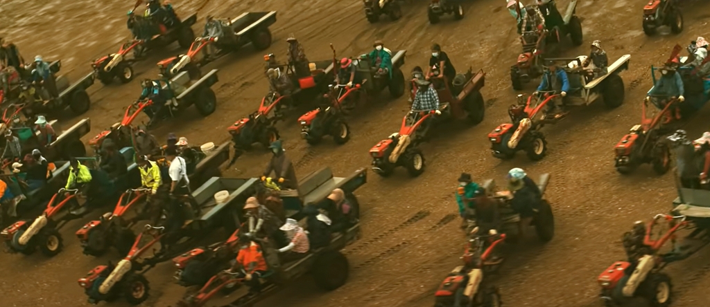 1분 24초 분량의 동영상은 한 남성이 경운기 시동을 거는 것을 시작으로 마을 주민들이 경운기 수십대를 끌고 나와 갯벌에서 함께 내달리는 장면이 압권이다.