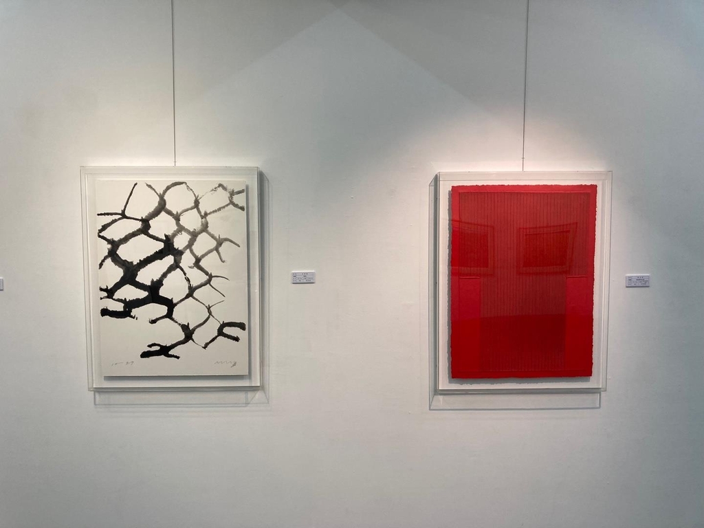 | ▲ (서울=연합뉴스) 강종훈 기자 = 청작화랑에 전시된 박서보(오른쪽), 서세옥의 판화 작품 |