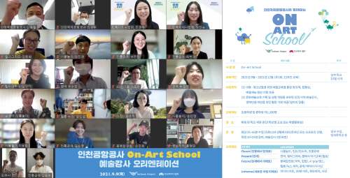 이와 관련해 인천국제공항공사는 지난 9일 오후 공사 회의실에서'On-Art School 참여 강사 오리엔테이션'을 비대면 온라인 방식으로 개최해 프로그램의 성격 및 커리큘럼 등을 참여 강사들과 공유하는 시간을 가졌다.