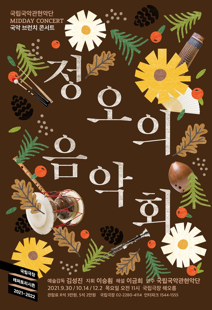 ▲ 국립국악관현악단 '정오의 음악회' = 국립극장 전속단체인 국립국악관현악단이 30일 오전 11시 중구 해오름극장에서 '정오의 음악회'를 연다. 이금희 아나운서가 해설을 맡고, 국립국악관현악단 부지휘자 이승훤이 지휘봉을 잡는다.