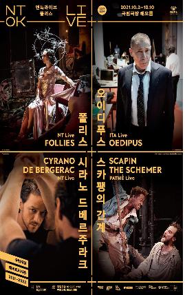 영국 국립극장의 '엔티 라이브' 프로그램인 스티븐 손드하임의 뮤지컬 '폴리스'와 제임스 매커보이 주연의 낭만희곡 '시라노 드베르주라크', 네덜란드 '이타 라이브' 프로그램인 로버트 아이크 연출의 연극 '오이디푸스', 프랑스 '파테 라이브' 프로그램인 프랑스 정통 코미디 '스카팽의 간계' 등 4개 작품이 소개된다.