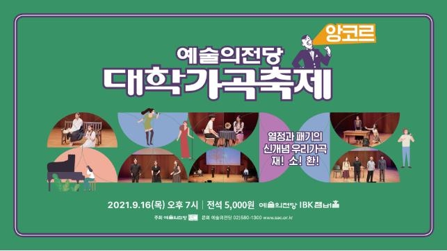 ▲ 예술의전당 대학가곡축제 앙코르 = 예술의전당이 지난달 14~15일 진행한 '2021 예술의전당 대학가곡축제' 앙코르 공연이 16일 오후 7시 예술의전당 IBK챔버홀에서 열린다.