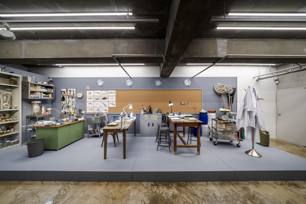 연구원들은 전시 기간 현장에서 해양생물을 그리는 세밀화가들이다. 완성된 그림은 연구실 벽면에 진열된다. 세트와 배우처럼 연극적인 요소가 있지만, 실제 작업 과정을 보여주는 전시의 일부인 셈이다.