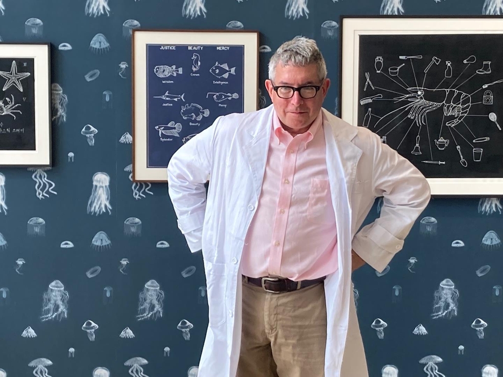 미국 작가 마크 디온(60)이 난데없이 갤러리에 연구실을 차렸다. 국내 첫 개인전 '한국의 해양생물과 다른 기이한 이야기들'에서 그는 독특한 방식으로 해양 생태계의 건강과 해양생물 종 다양성 문제를 다룬다.