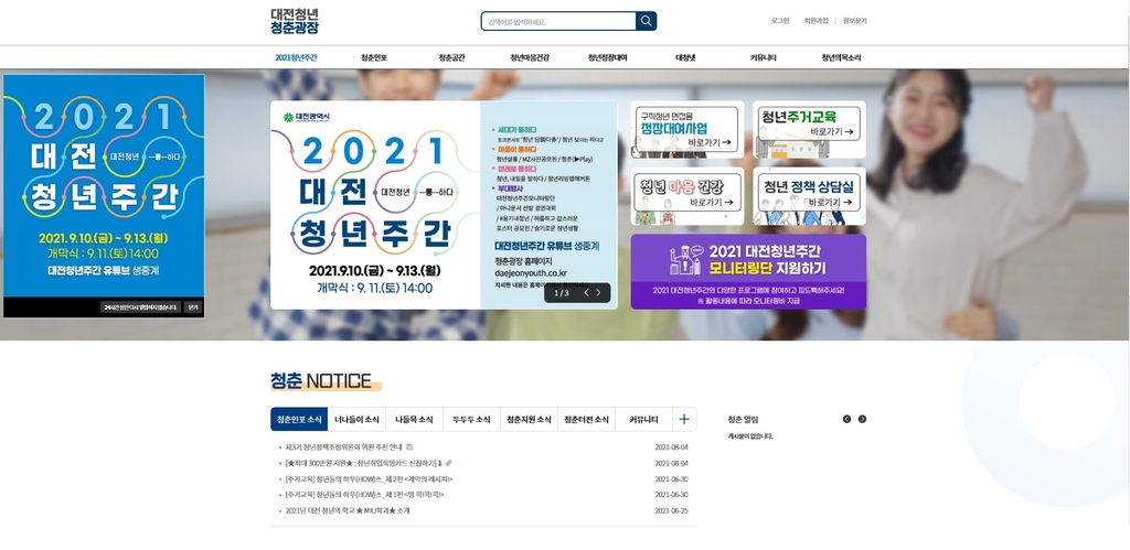 | ▲ 대전청년 청춘광장 홈페이지 [대전시 제공. 재판매 및 DB 금지] |