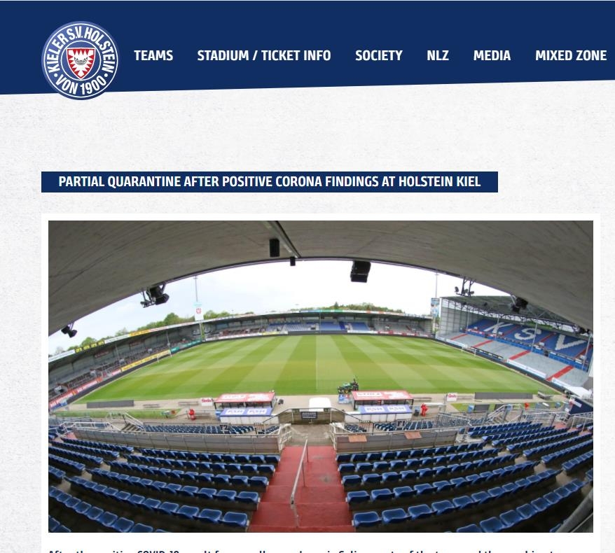 | ▲ 선수단 부분 격리 조치 소식을 알린 홀슈타인 킬. [홀슈타인 킬 홈페이지. 재판매 및 DB 금지] |