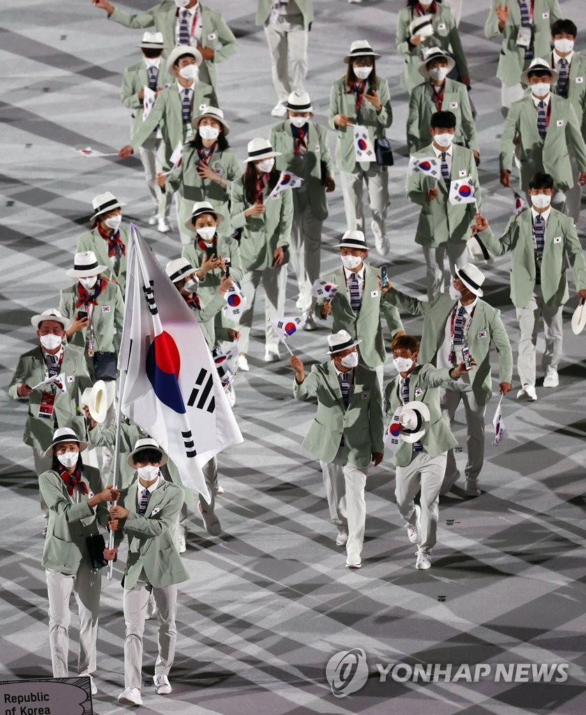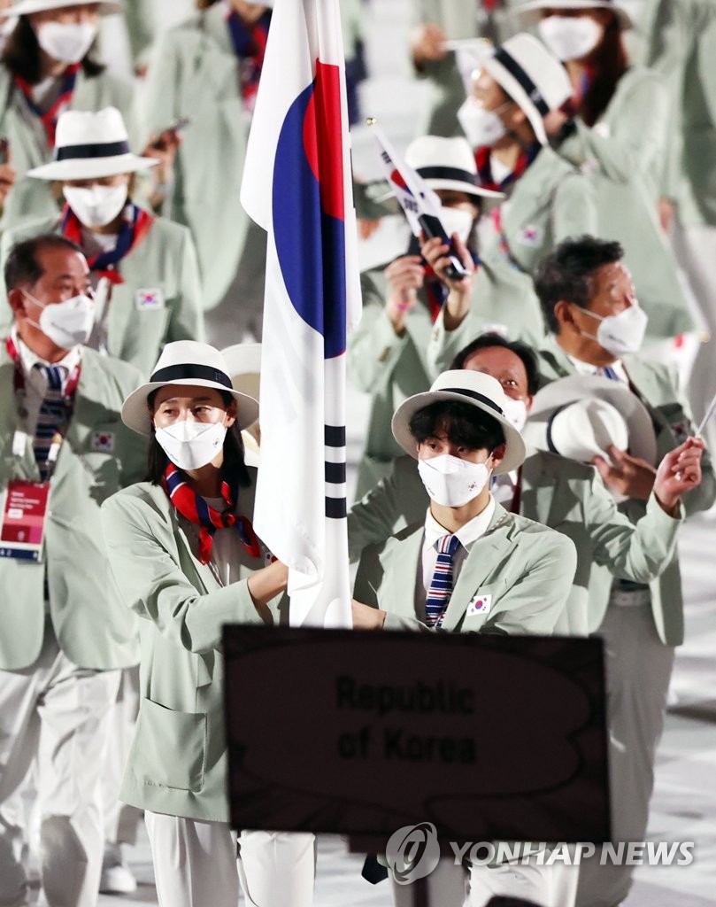 TOKYO, July 23 (Yonhap) -- Led by one of its biggest sporting stars and a promising teen athlete, the South Korean delegation to the Tokyo Olympics joined Friday's opening ceremony as the 103rd country in the parade of nations.