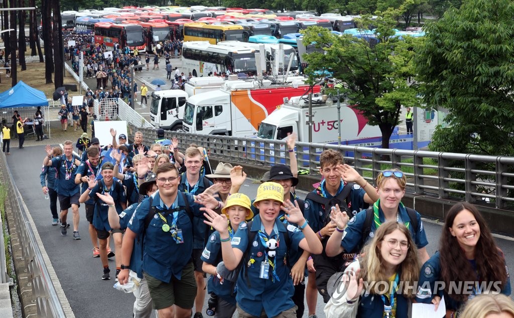 | ▲ 폐영식•K팝 콘서트 관람 마친 잼버리 참가 대원들 (서울=연합뉴스) 김인철 기자 = 11일 마포구 상암동 서울월드컵경기장에서 열린 새만금 세계스카우트잼버리 폐영식과 K팝 콘서트 관람을 마친 잼버리 참가자들이 버스로 이동하고 있다. 2023.8 11 yatoya@yna.co.kr |