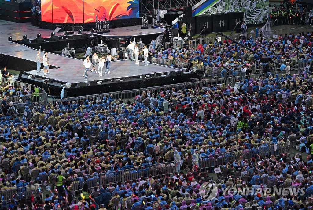 | ▲ 잼버리를 위한 K팝 공연 (서울=연합뉴스) 11일 서울월드컵경기장에서 K팝 슈퍼라이브 콘서트가 열리고 있다. 2023.8.11 [문화체육관광부 제공. 재판매 및 DB금지] photo@yna.co.kr |